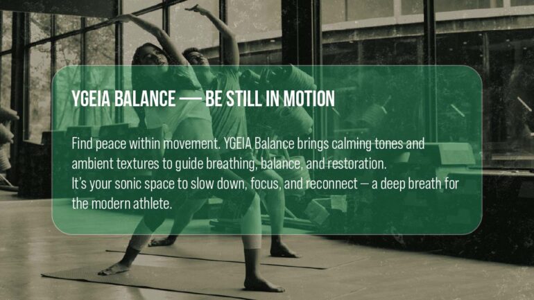 From high-energy training to calm recovery, every track reflects YGEIA’s commitment to living well — through motion, balance, and sound.